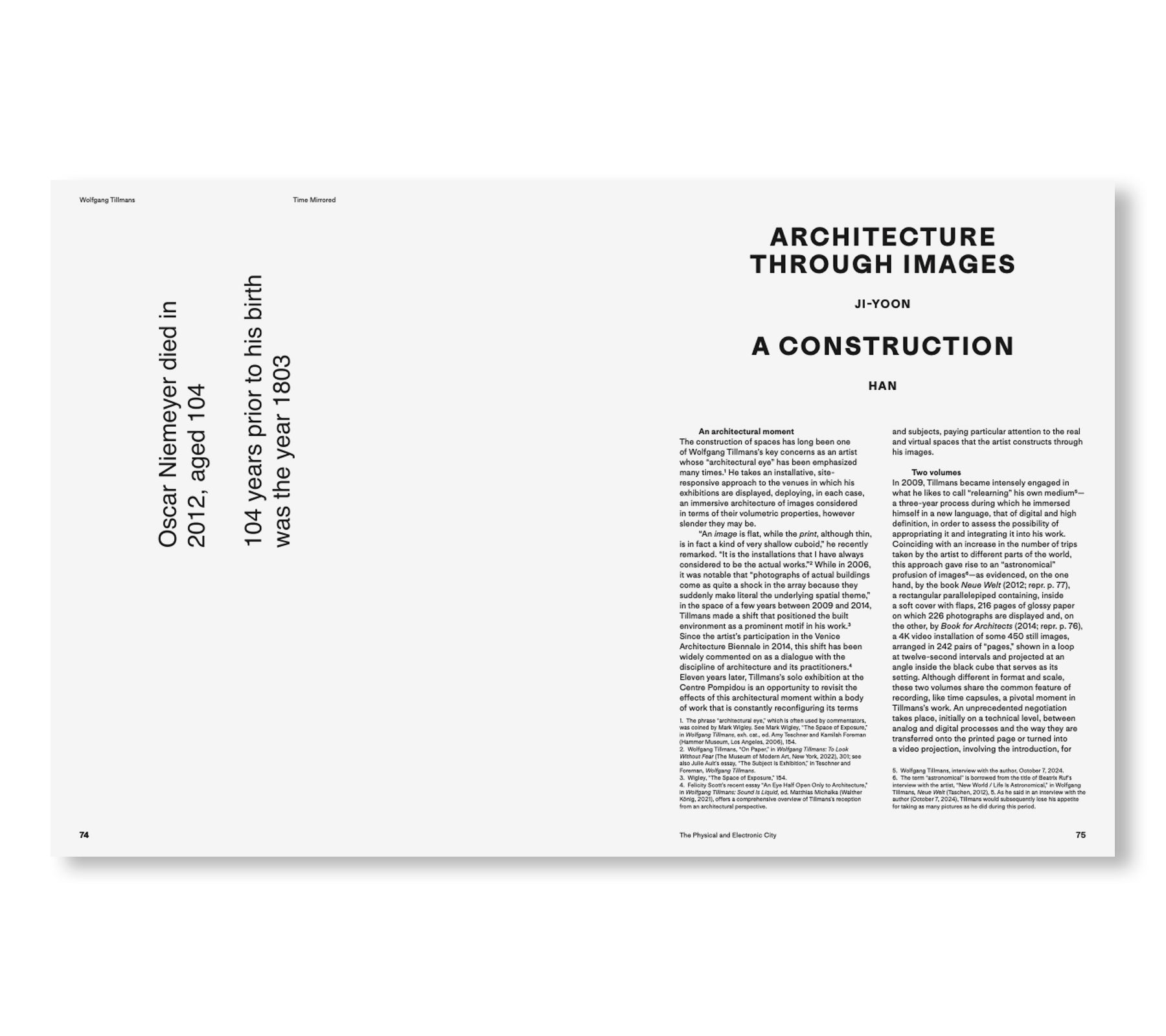 現代美術界で重要な賞の一つである「ターナー賞」を2000年に受賞し、ロンドンとドイツを拠点として活動するドイツ人フォトグラファー、ヴォルフガング・ティルマンス(Wolfgang Tillmans)の作品集。2025年6月から9月にかけて、「ジョルジュ・ポンピドゥー国立芸術文化センター(Centre national d’art et de culture Georges Pompidou (CNAC-GP)、以下ポンピドゥー・センター)」で開催する展覧会に伴い刊行された。